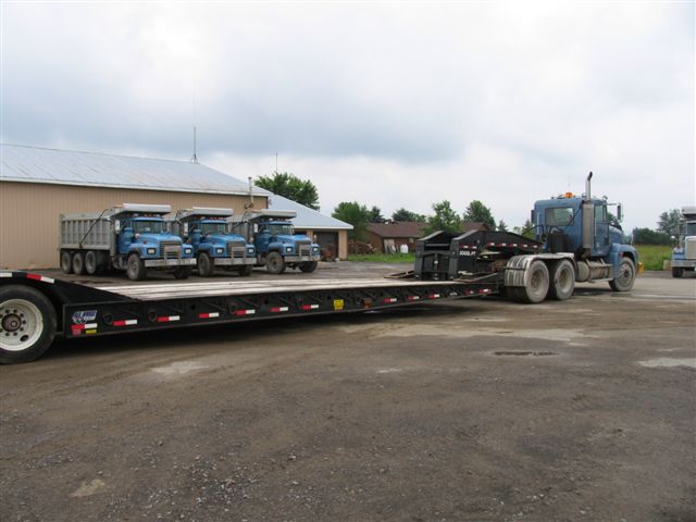 We have a fleet of tri-axel dump trucks radio dispatched for most efficient service. They are set up for asphalt or aggregates. We also have trucks available for heavier rock hauls and live bottom trailers. Our 50 ton low boy is available for equipment moves as are our small trailers for smaller equipment.